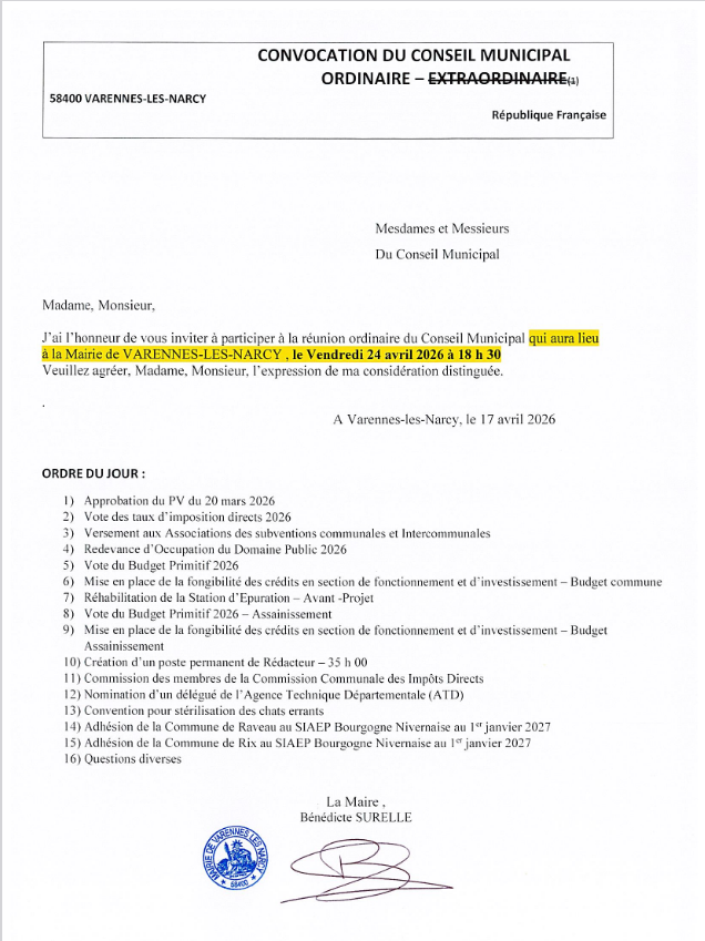 Nous vous transmettons la copie de la lettre reçue ce jour en Mairie afin que vous puissiez en prendre connaissance.